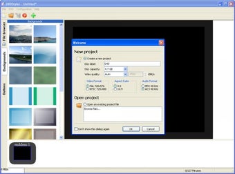 DVDStylerは、シンプルな操作でDVDのオーサリングが行えることが特徴です。起動するとまずDVDメニュー用のテンプレートの選択画面が起動します。テンプレートを選択するとメイン画面が起動します。メイン画面は3ペイン構成で画面右にはプレビューおよび編集画面が表示され、画面左は「ファイルブラウザー」「背景画像」「ボタン」の3つのタブで切り替え可能な操作画面、画面下部には選択した動画ファイルが表示されます。DVDを作成するにはまず「ファイルブラウザー」でDVDに収録したい動画ファイルを選択します。次に「背景画像」や「ボタン」でメニュー画面の編集を行います。それぞれ背景画像を自由に選択できるほか、操作ボタンの配置やボタンに応じて再生させる動画などを自由に設定することができます。シンプルな操作で自由度の高いメニュー画面を作成できることが魅力です。